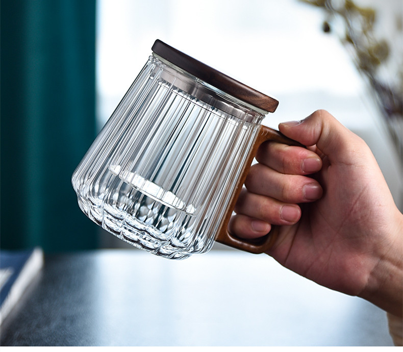 【商品名稱】:玻匠人品牌玻璃茶具 條紋木璃辦公三件杯 玻匠人十大品牌茶具